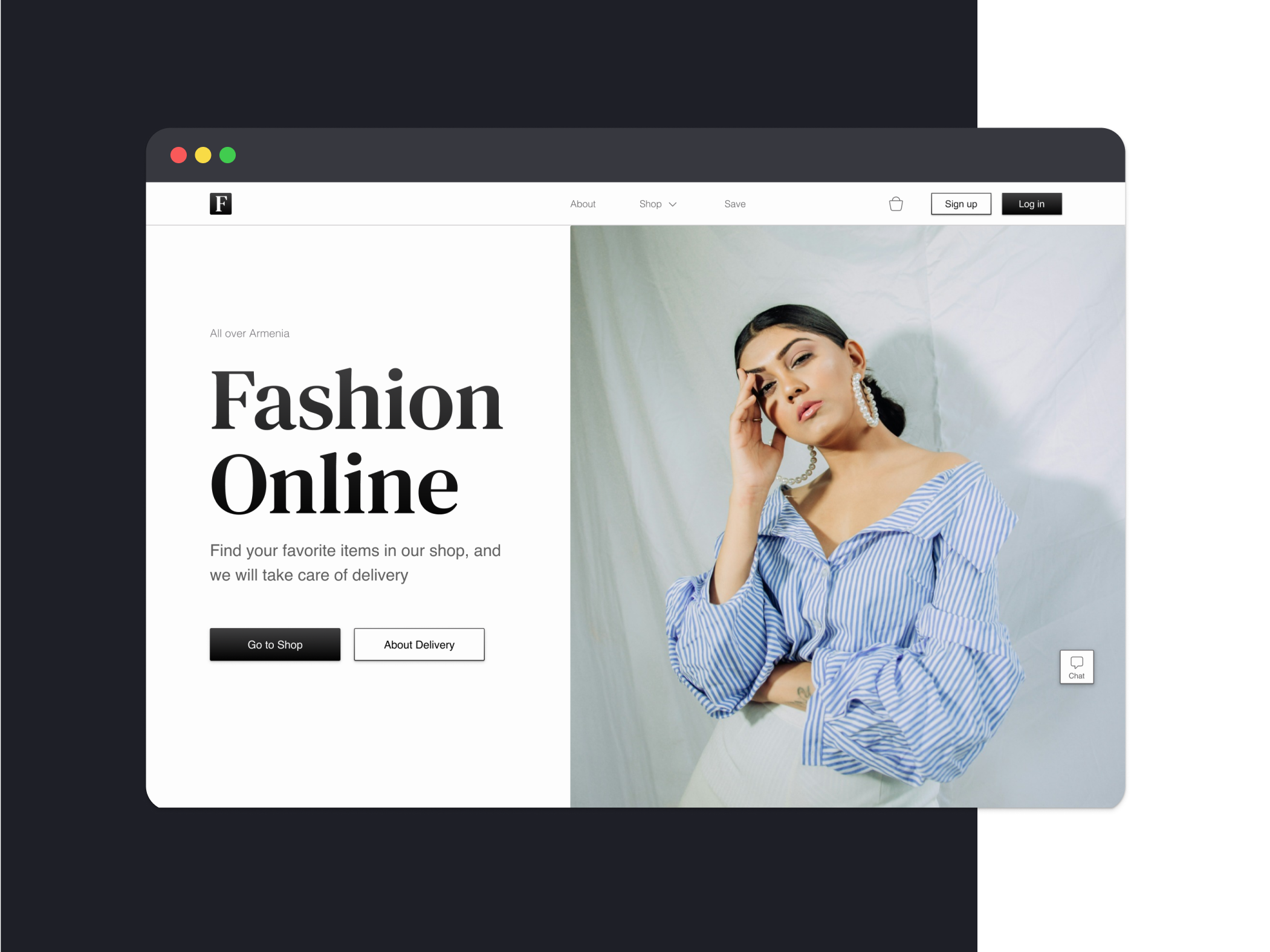 I want to present a landing page that invites the user to move to the Fashion Online store. This store specializes in delivering clothes of popular brands throughout Armenia.