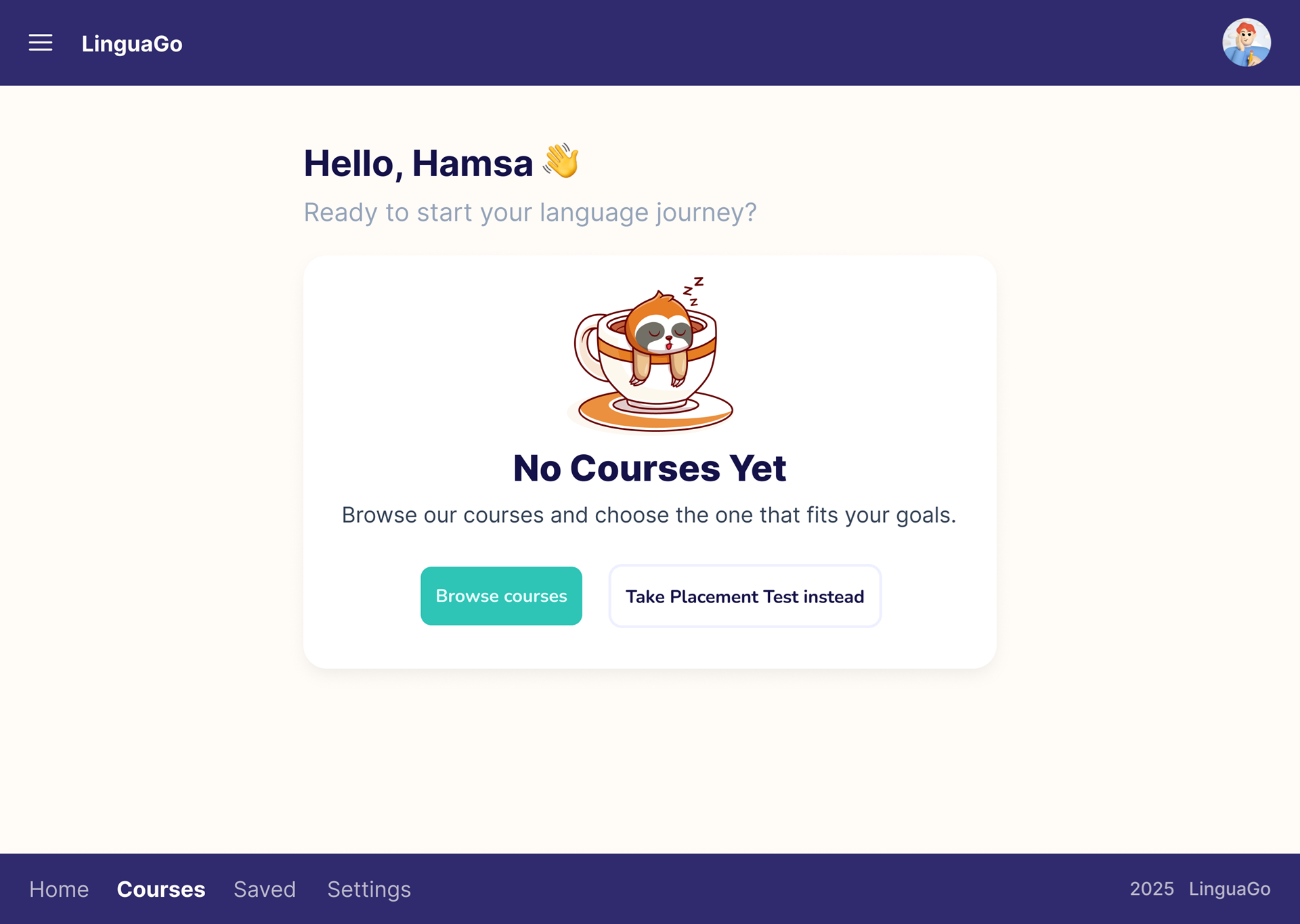 This state greets new users who haven’t started a course. The goal was to reduce decision paralysis and get them moving quickly.