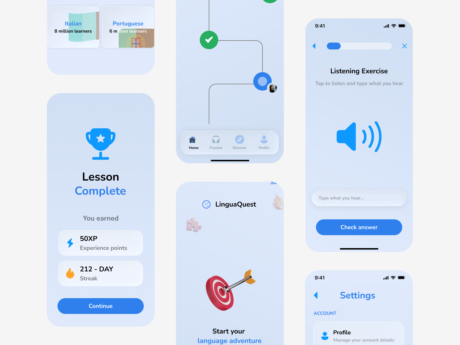 - Comparative Implicit Prompting: I mentally compared my outputs to Duolingo's. If a screen felt too similar, I added constraints like "use a more sophisticated illustration style" to differentiate LinguaQuest.