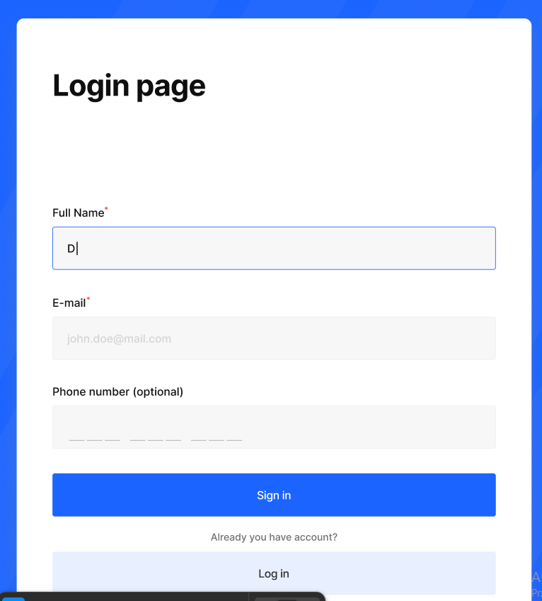 The design follows a minimal and distraction-free approach, allowing users to focus solely on completing the form. Neutral background tones combined with a strong primary color for the CTA help guide attention without overwhelming the user.
