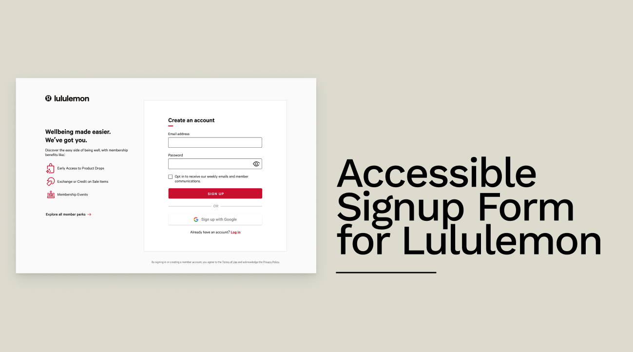 The error messages are indeed clearer now and the colours meet the contrast ratio requirements. The focus and error states are also well designed and visually unambiguous which is great for keyboard users. I do think the SIGN UP button should say SIGN IN since signing up and creating an account in most cases is the same thing. They both assume you don't have an account yet. I do appreciate the inclusion of alternative sign in methods since I myself use that often. The form flows well and with the real time password validation it makes it clear to the user what needs to be done.