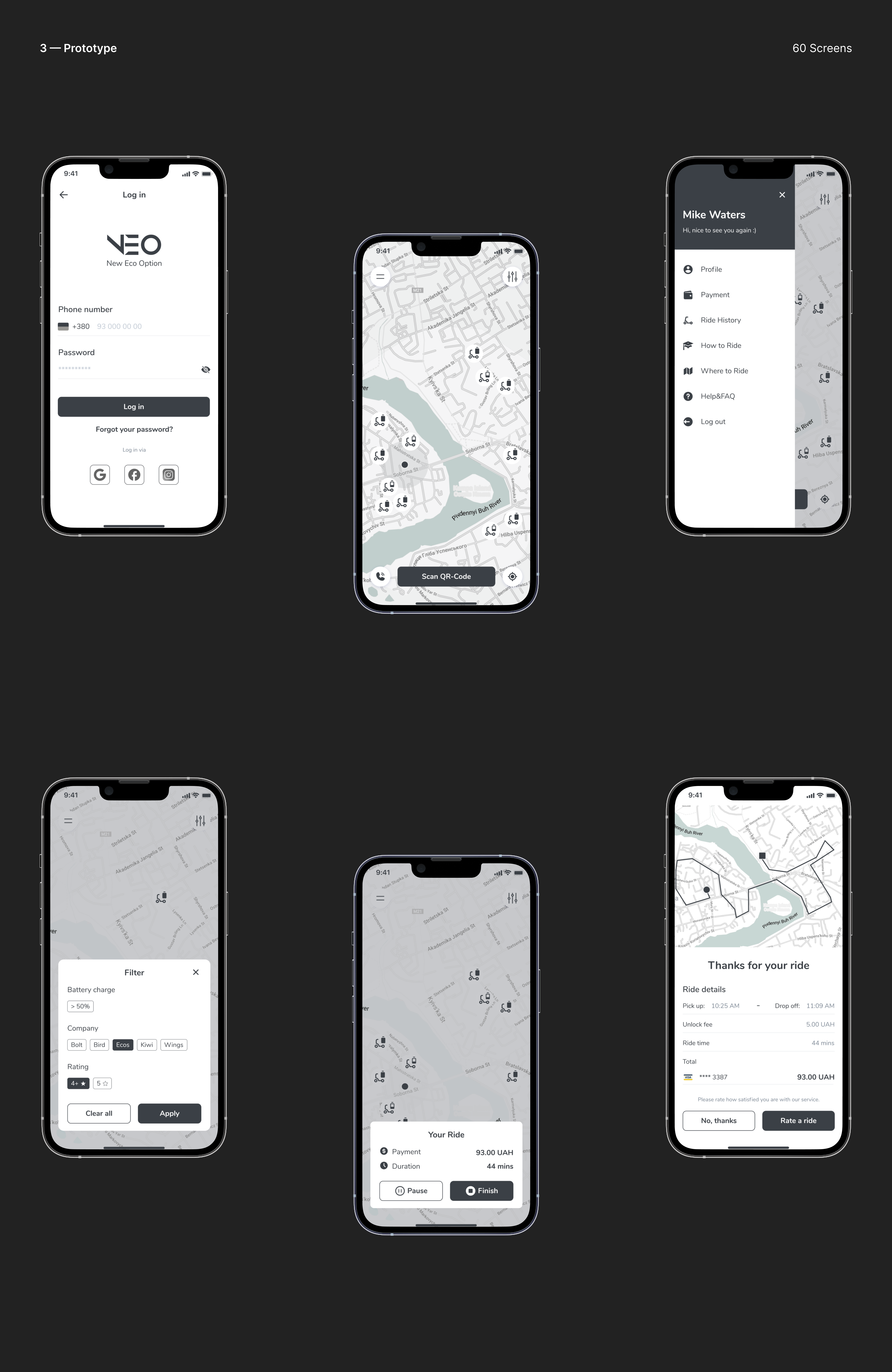 Overview. New Eco Option is a mobile application for scooter rental which collected scooters of all companies around Ukraine. The app provides users with better choice, and allows them to pick the best scooter available for the ride.
