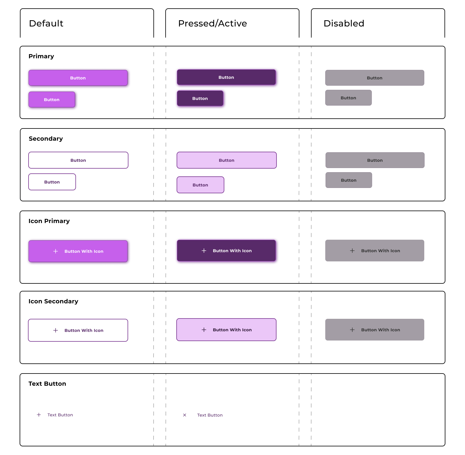 Lastly, for the default states, I originally had different versions for each button type, but after reading some other breifs, I saw advice to make the default type consistent for all button types so as to stay consistent.