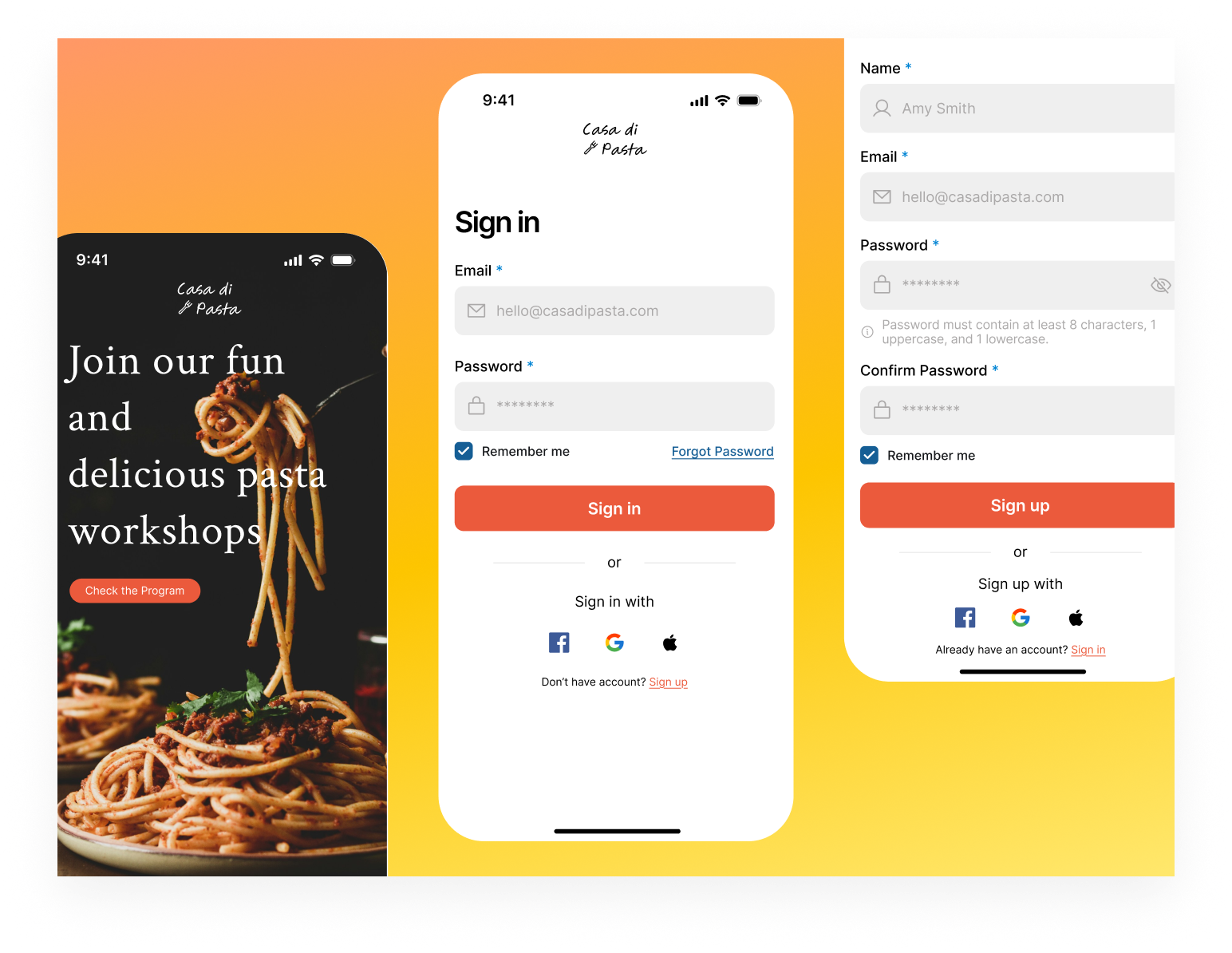 This project is a mobile registration and login flow for a pasta workshop app. My goal was to create a friendly interface that makes signing up as easy as possible.