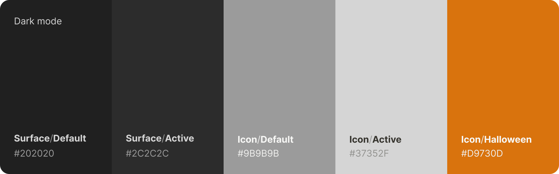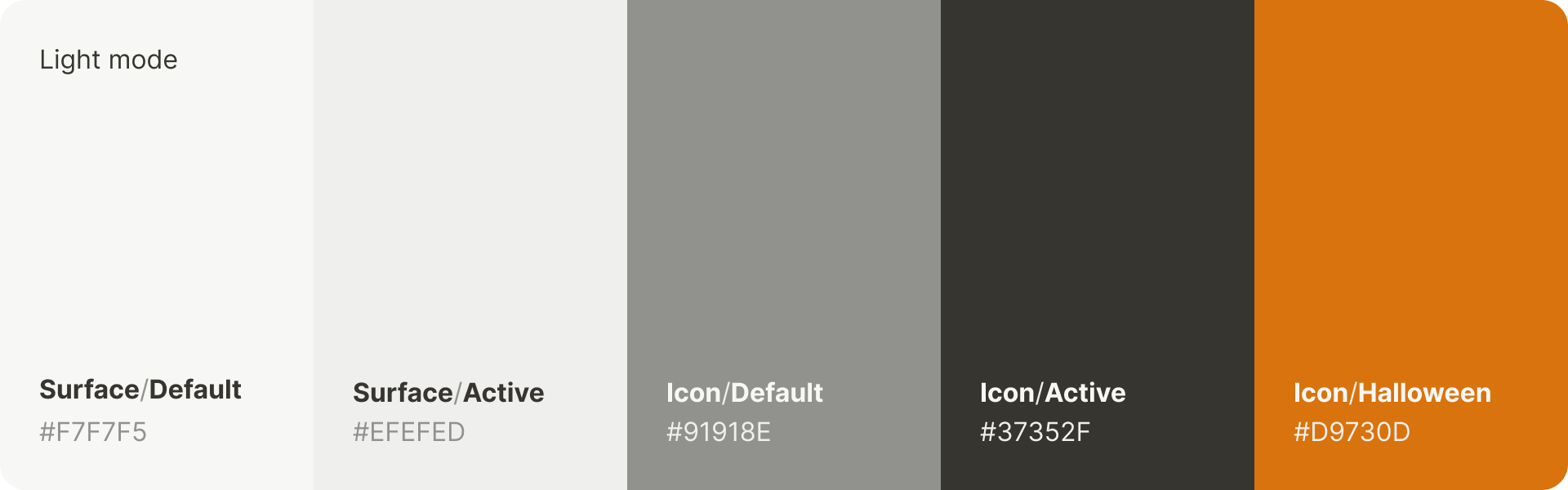I created a small colour palette for the icon set based on the colours used on the sidebar, and I've also added an Halloween colour for icon details using the Notion's orange colour: