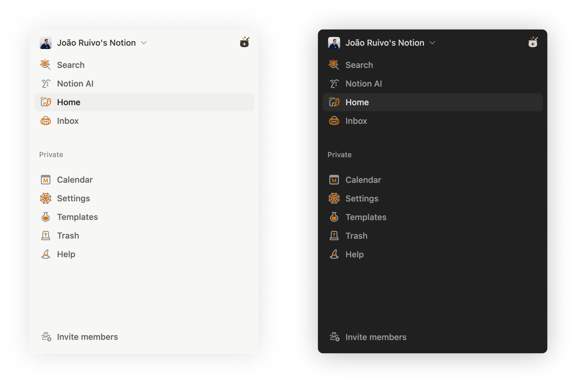 I was super excited to see someone redesigning Notion since it's one of my absolute favorite apps and one that I use all the time. When I was thinking about which app to redesign, Notion was definitely at the top of my list. I was a bit hesitant at first because I thought its functionality might make it tricky to redesign and give it a fun Halloween theme. But I ABSOLUTELY love your idea of using dual tones instead of just outline or filled icons - it's so clever and really makes the design pop without making it too busy or sacrificing functionality. You've done an amazing job from start to finish! Kudos to you!