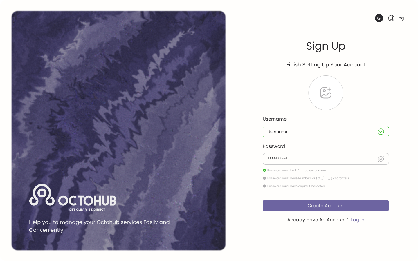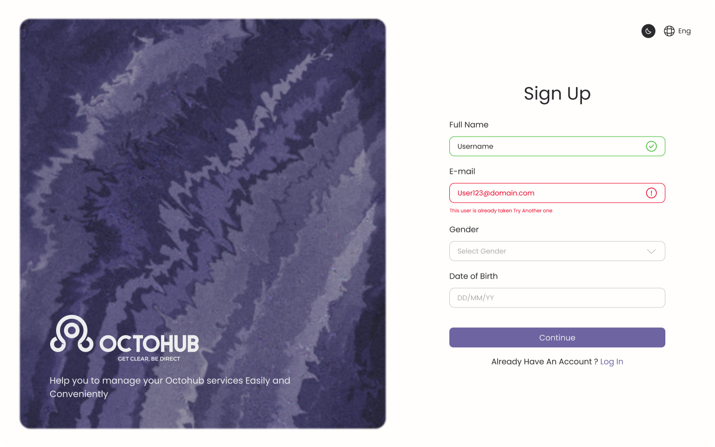 Octohub solutions Log in Form