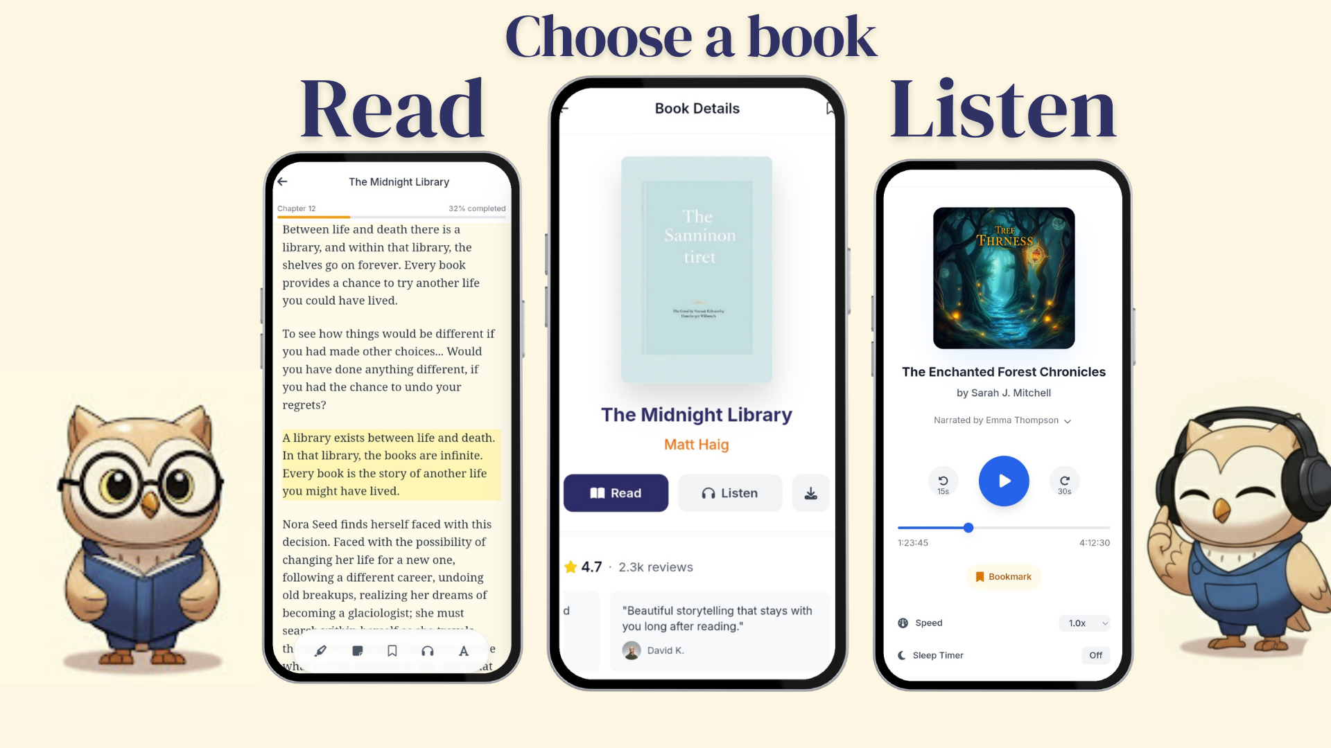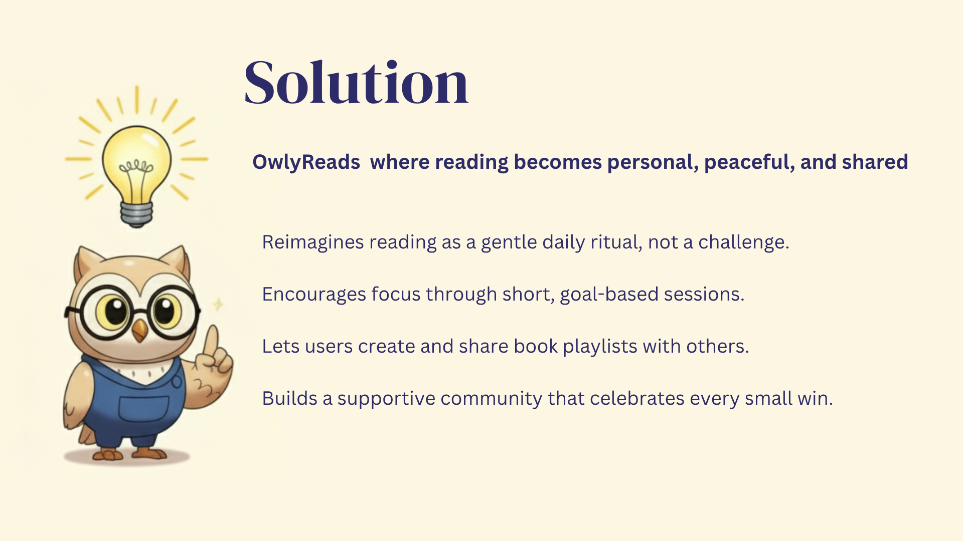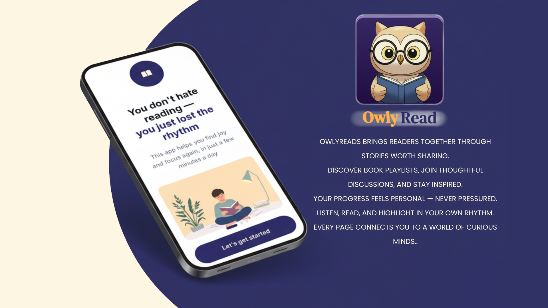 Owly Reads is a cozy reading app that helps readers stay consistent, explore books visually and audibly, and share their reading playlists.