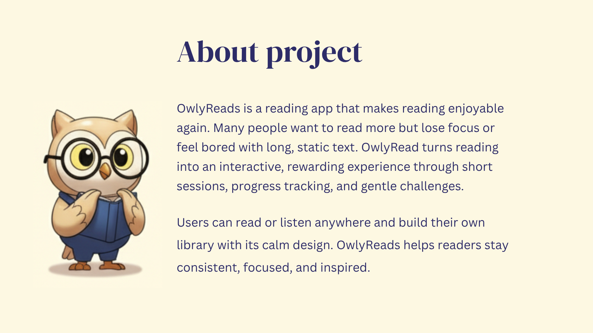 Owly Reads was designed to bring back that quiet joy of reading — one small page at a time.