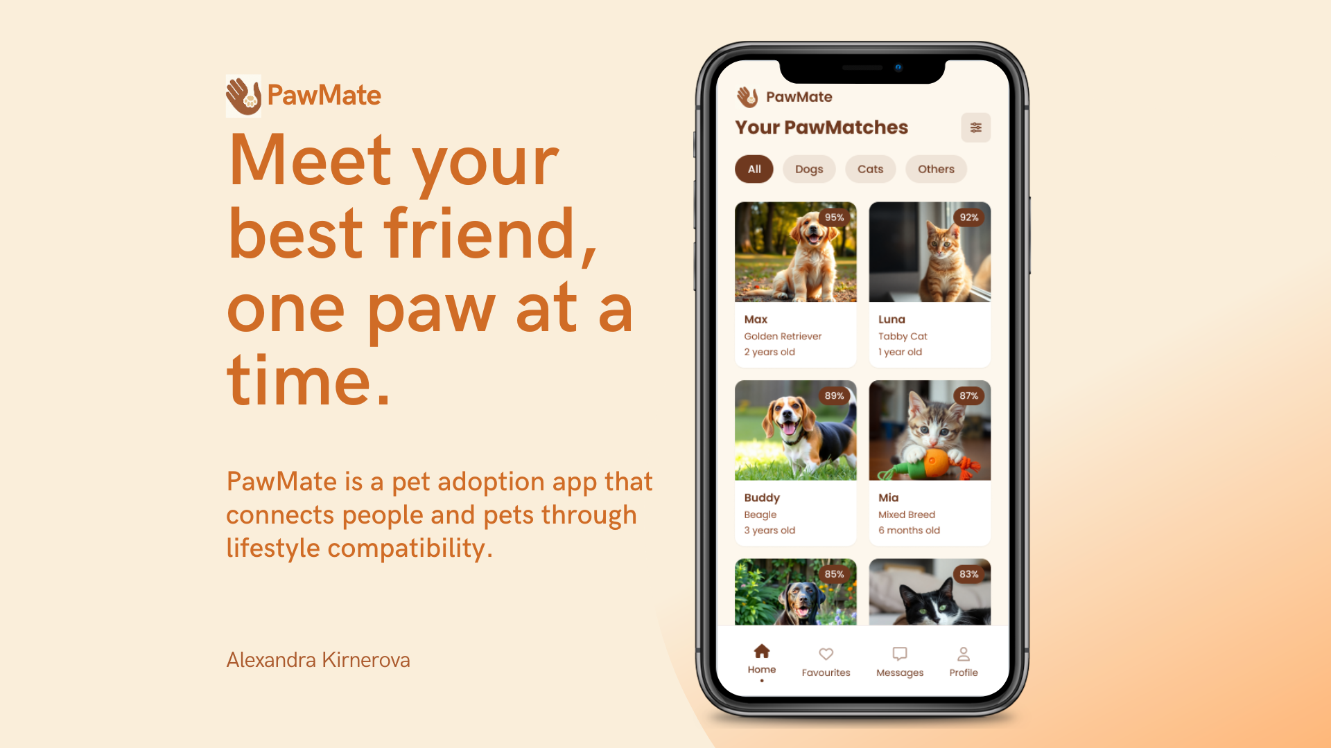 PawMate reimagines the adoption process, turning fragmented listings into meaningful matches built on understanding and lifestyle compatibility, while supporting the full adoption journey.