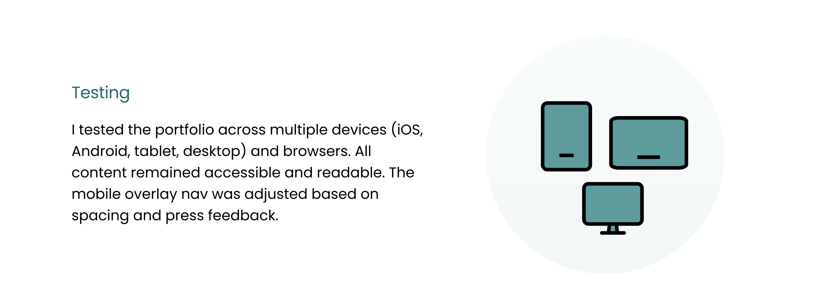 Nice portfolio piece! I enjoyed the explanation of your design process and the neutral, minimalistic interface of the site. The testimonials and toolset on your site are great touches.