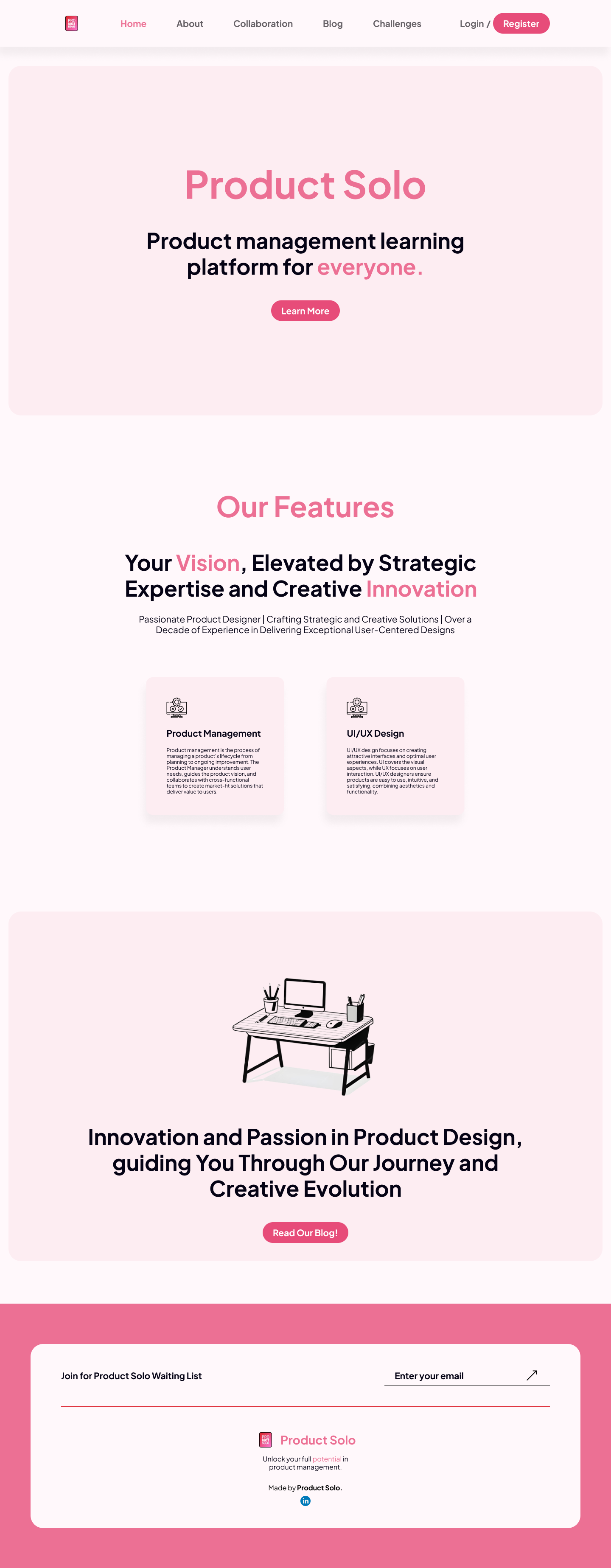 At Product Solo, we’re dedicated to helping you thrive in the dynamic world of product management. Whether you're just beginning or looking to advance your expertise, our platform provides a comprehensive learning experience tailored to your journey.