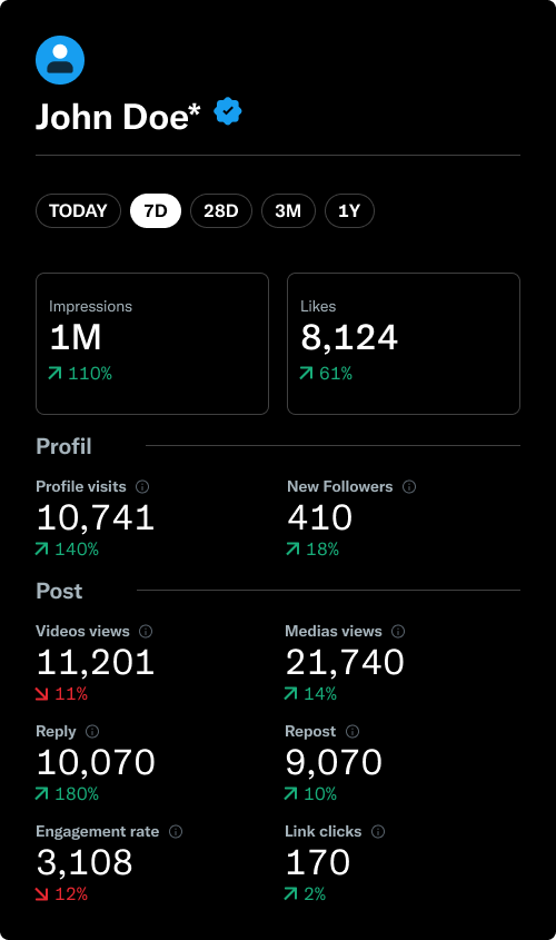I redesigned the Twitter statistics page, emphasized the main information, and grouped the Post's stats and the Profil stats