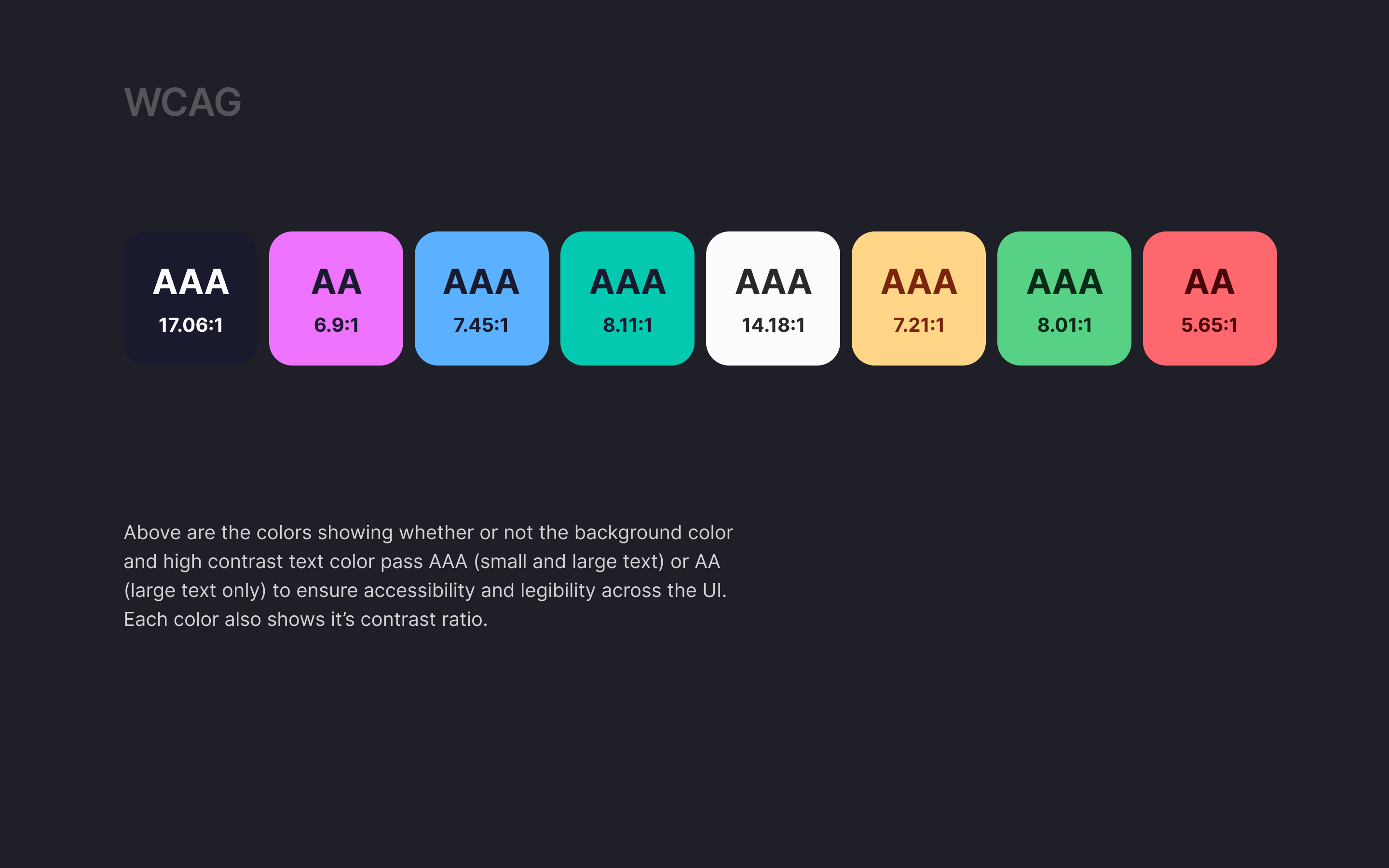 You've built a thoughtful color system with clear structure and strong accessibility foundations. The categorization into Primary, Secondary, Neutral, and System colors is well explained, and WCAG compliance was clearly a priority.