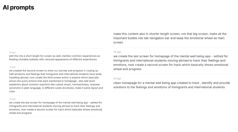 - Designed low-fidelity wireframes on UX pilot with AI prompts for quick testing.