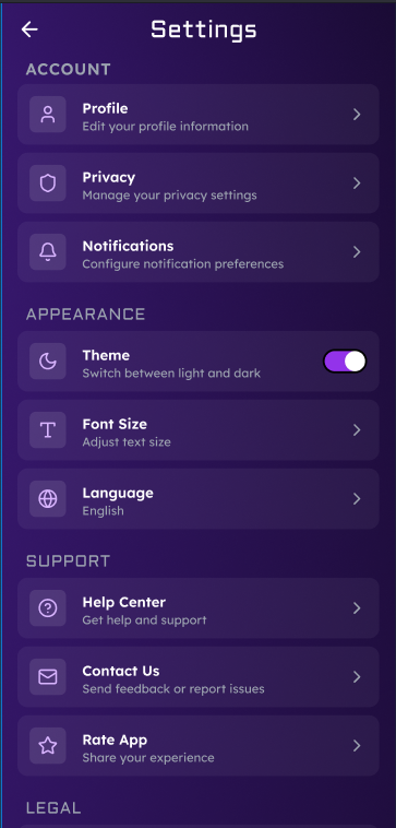 Prompting for celestial motifs in layout elements made the profile feel personal and branded. Maintaining grid consistency keeps the app familiar to the user as they expect.
