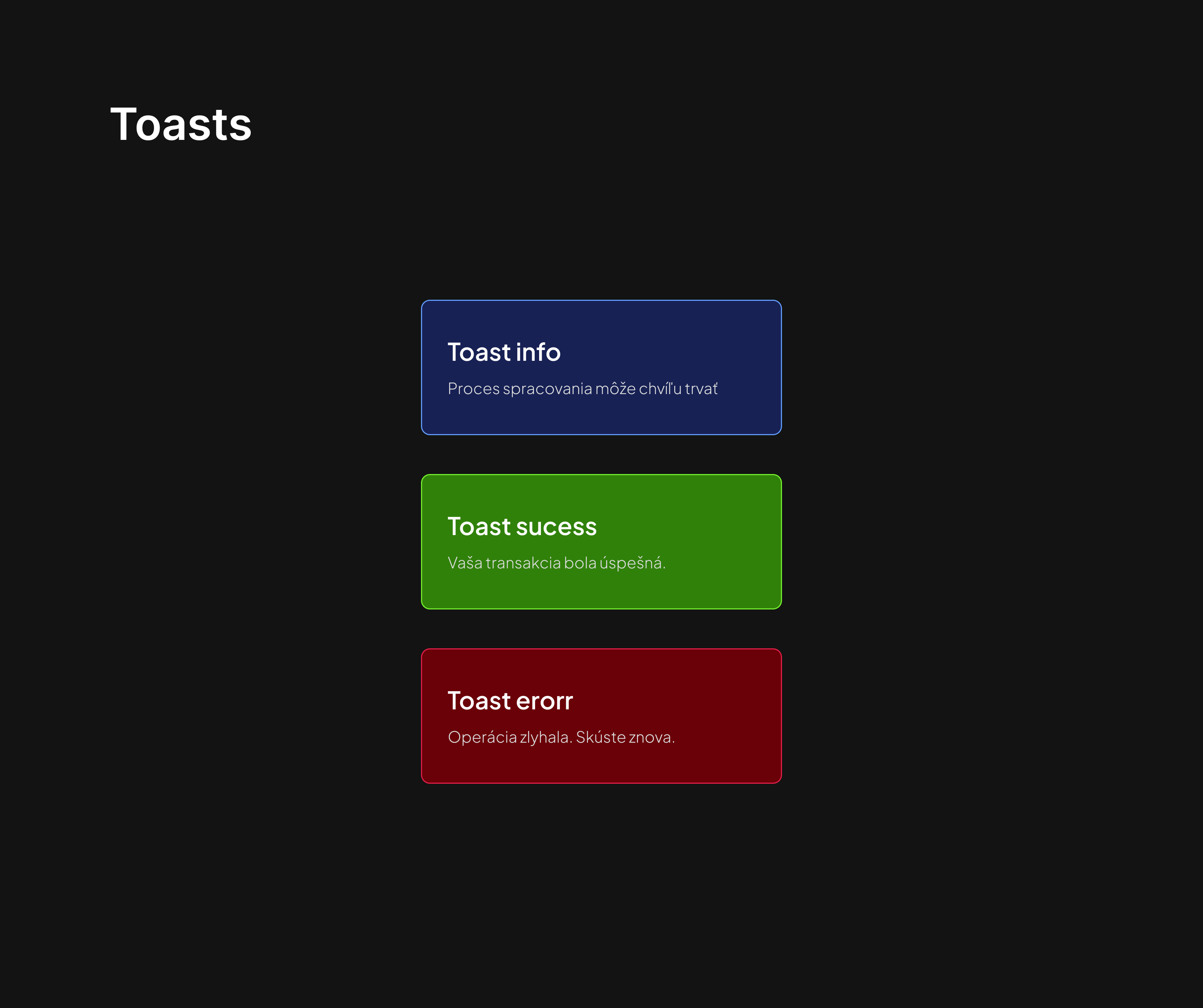 Error Toasts -Notify users of issues with a bold red, encouraging resolution.