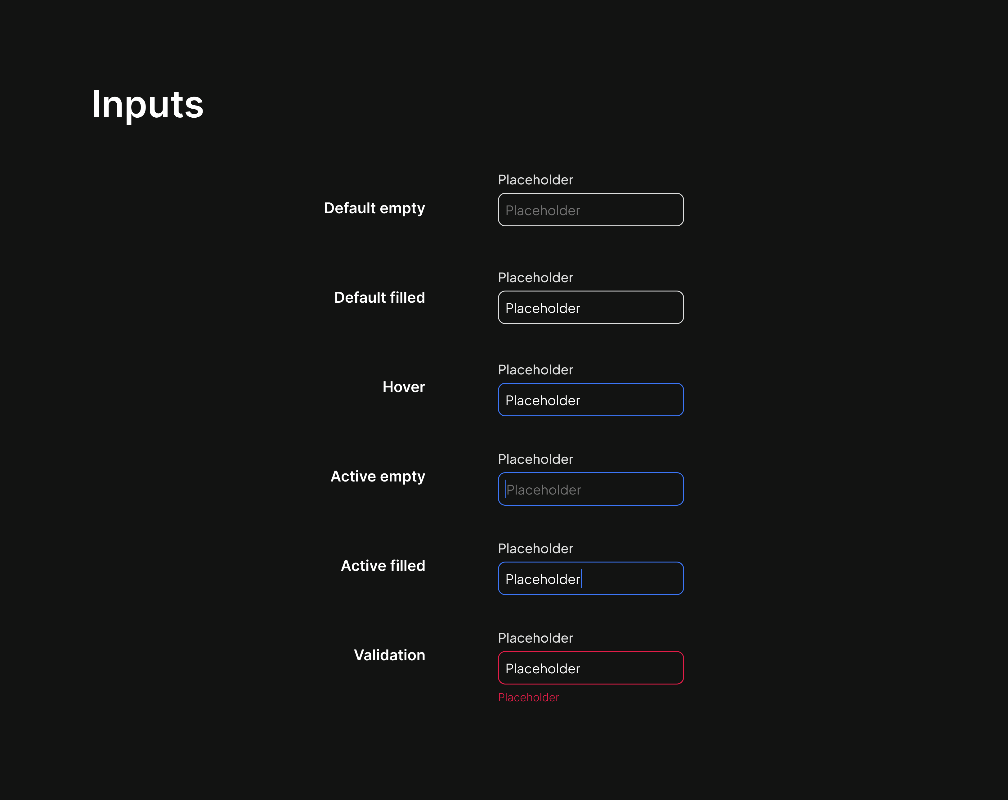 Input fields are designed for clarity and usability across various interaction states: