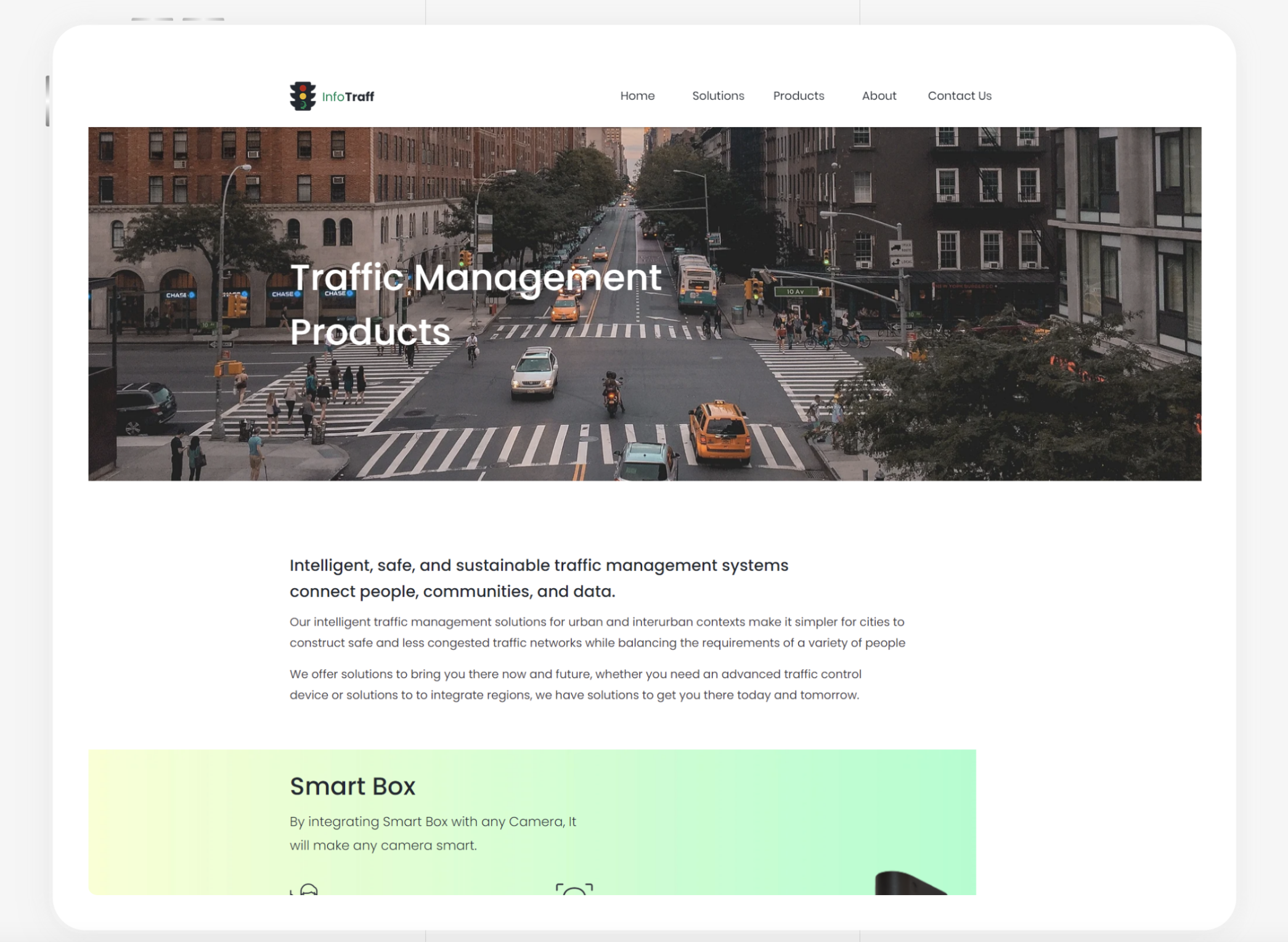 The hero section currently says, “unique detections for unique problems.” While this is a thoughtful statement, it might be beneficial if it were more specific to the context of traffic management to connect with viewers immediately.