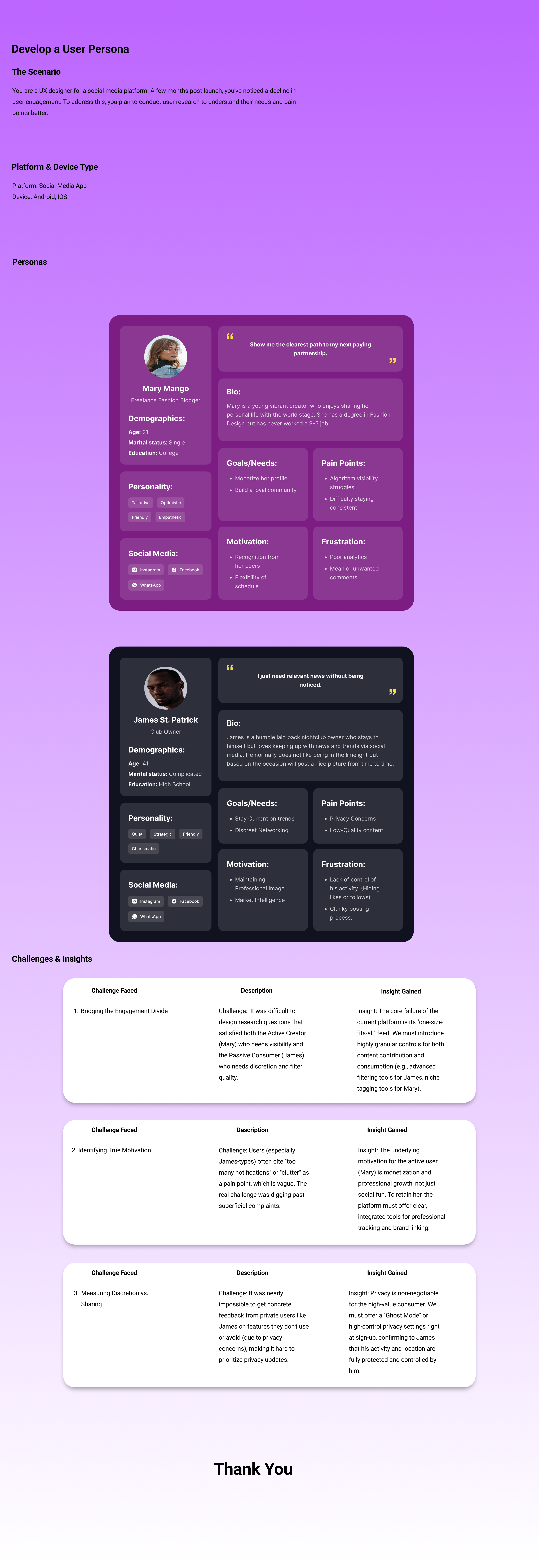 I also wonder why you chose only two personas. On social media, there are usually more creator types, such as beginner creators, business creators, niche creators, and influencers. Where did you get the data for these personas? Did you have interviews with them?