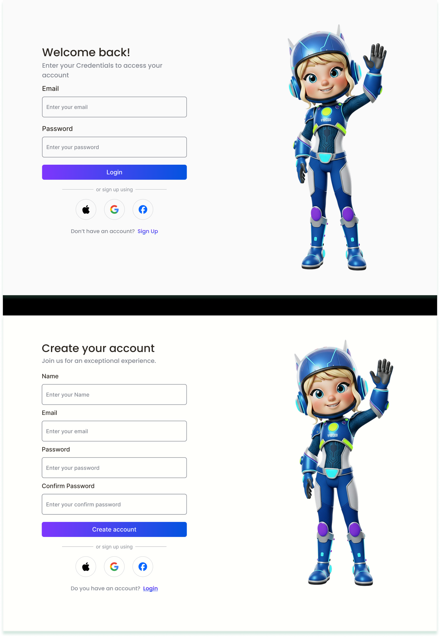 - Simplified Sign Up: The Sign Up flow was designed to be short and straightforward, reducing the steps needed to create an account. This helps improve conversion rates and reduces drop-offs.