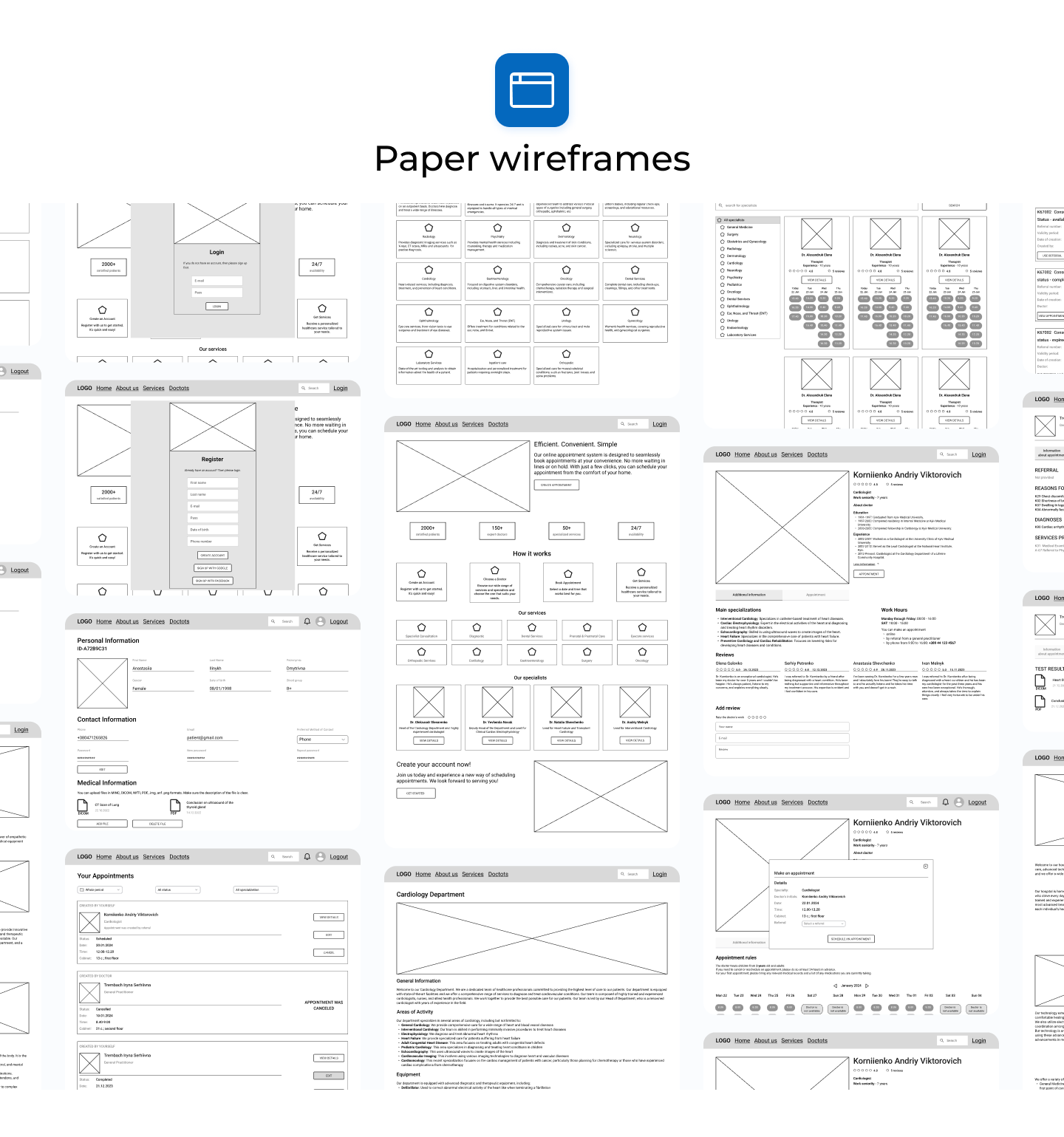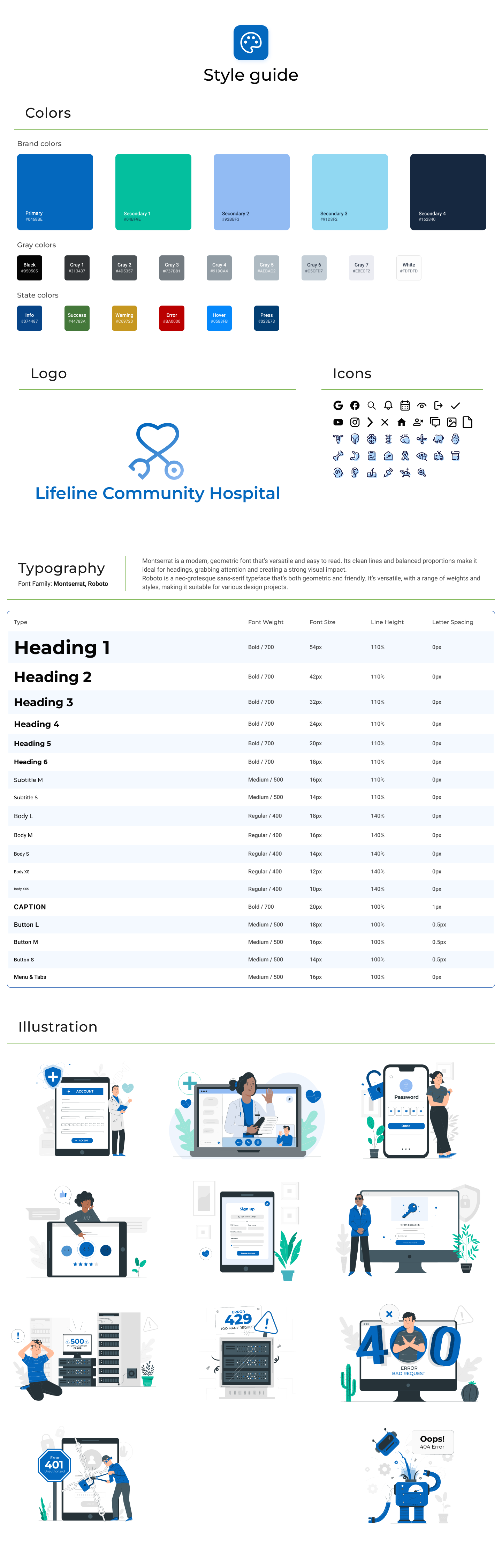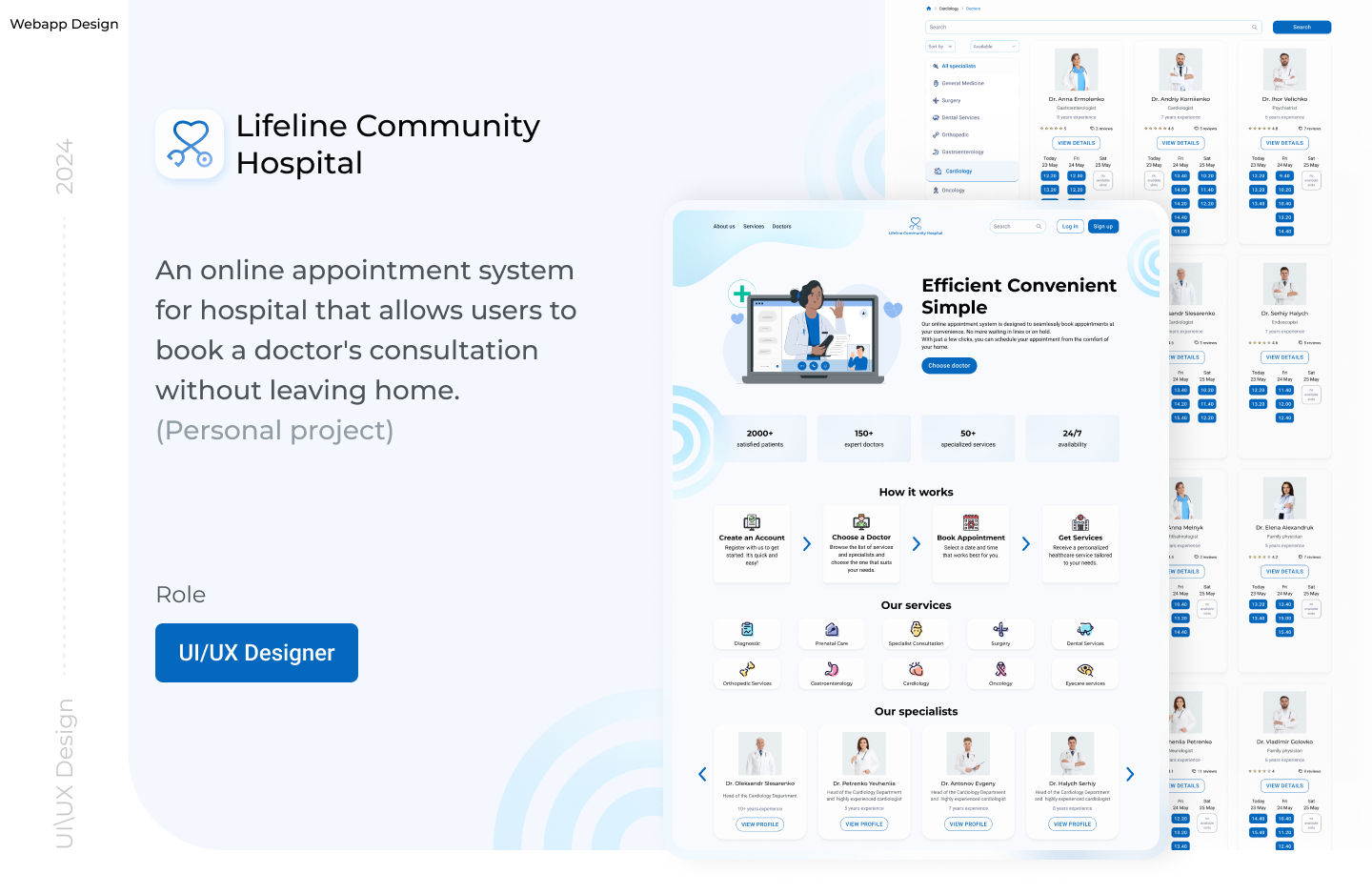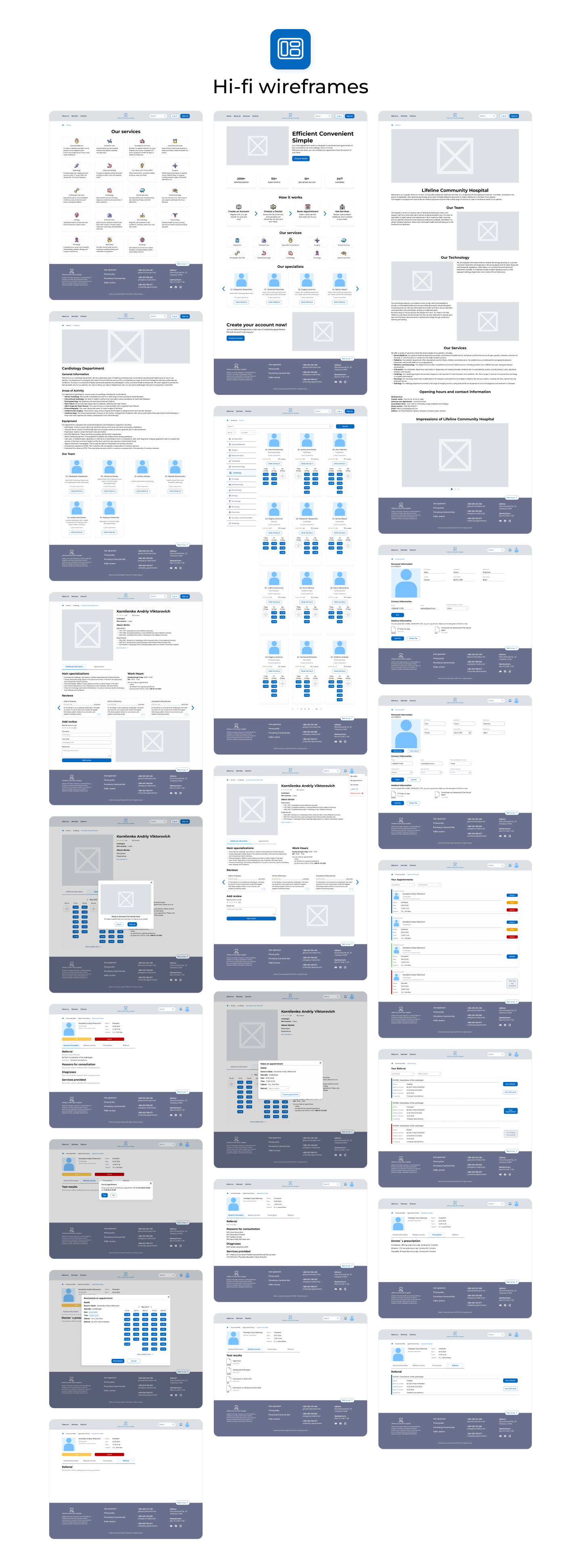 This is an app for medical services, and these are the two variants of light and dark mode. Below, I am describing some of the decisions. I