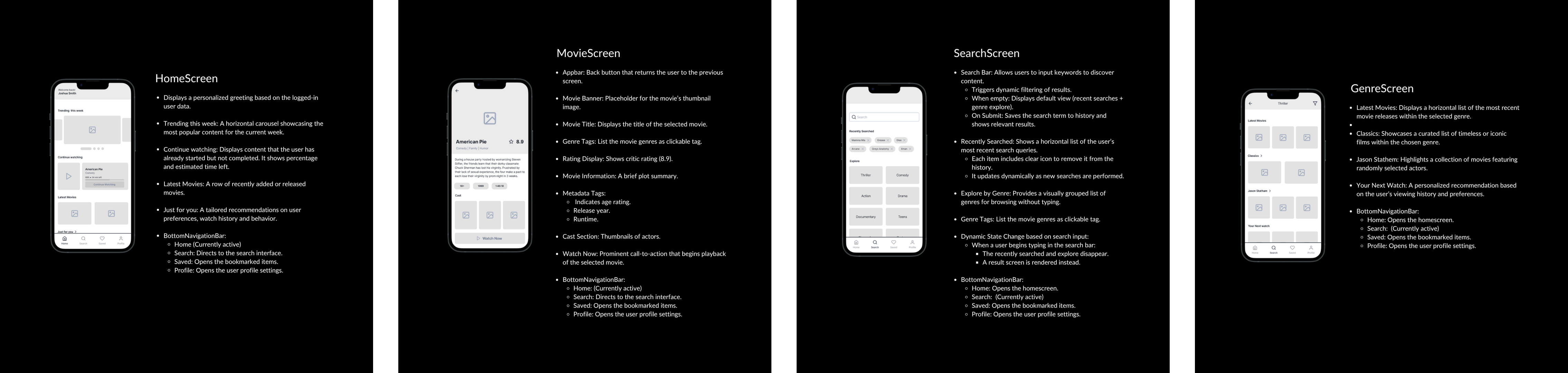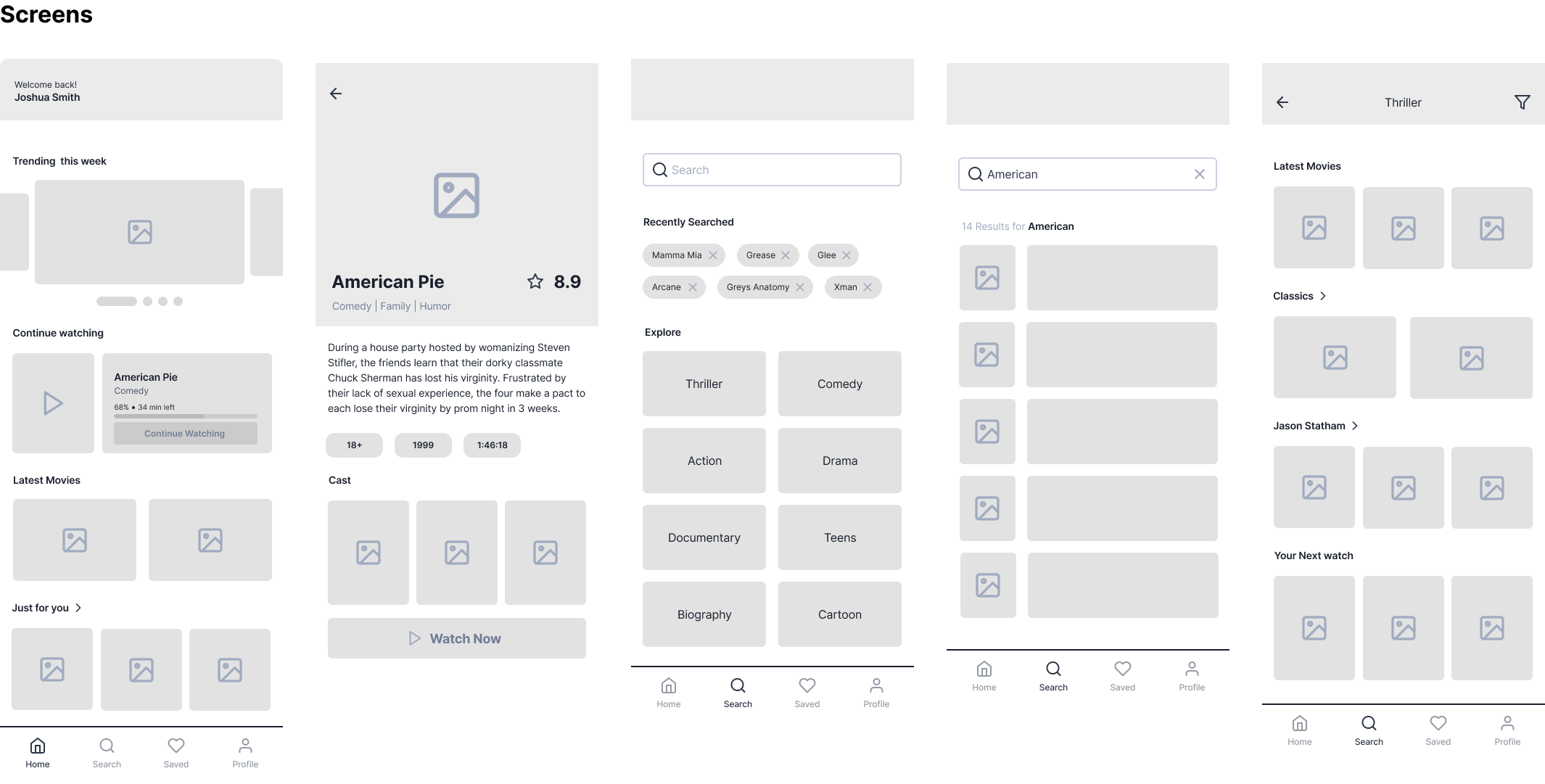 Hey Regína! Nice job! The wireframes are clear, with logical navigation and well-placed sections like “Continue Watching” and “Trending This Week.” The flow between screens is consistent and easy to follow. That said, the brief called for a unique usability approach - right now it feels quite safe and similar to existing streaming apps. You could explore standout features like mood-based recommendations, watch party tools, or interactive previews. Also, a quick competitive analysis and some accessibility considerations early on would make this even stronger. Keep up the good work!