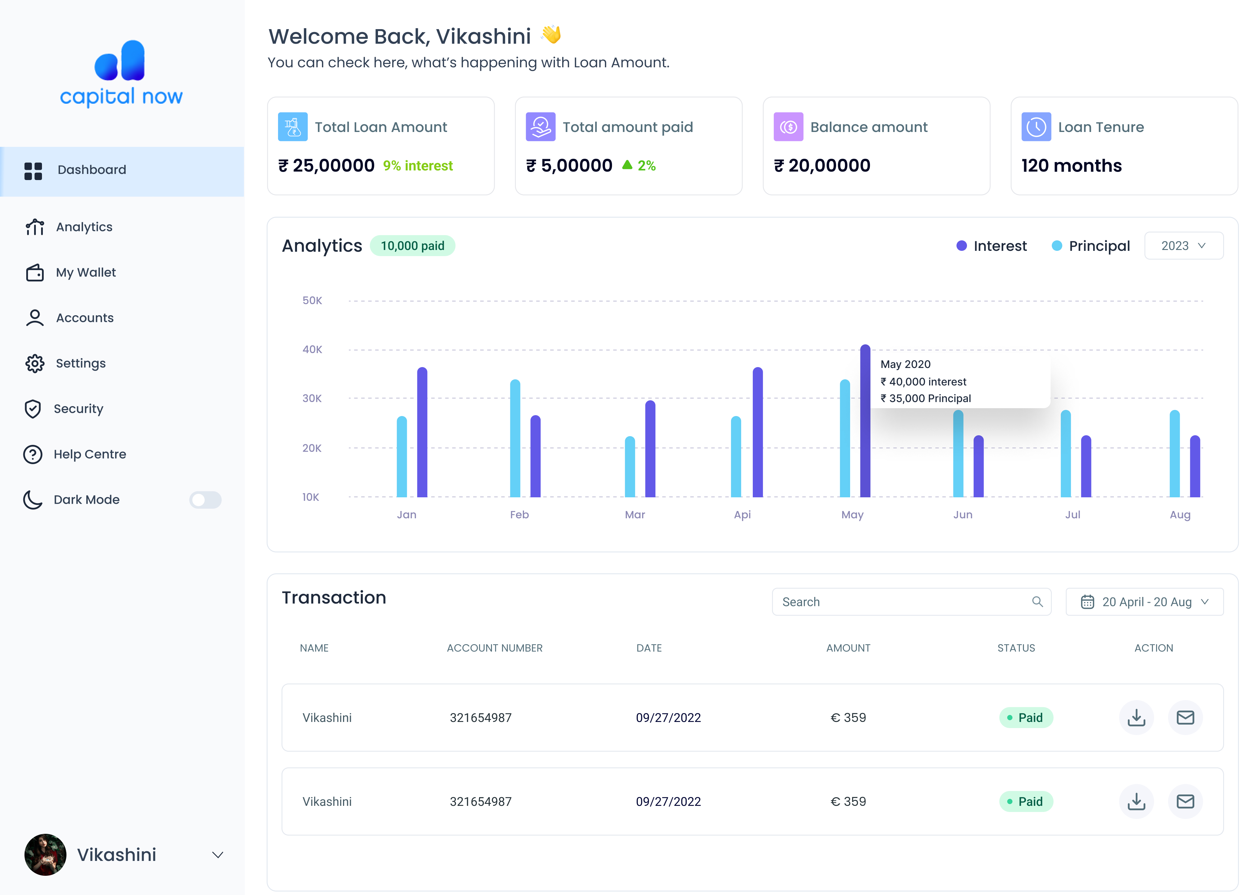- The "Loan tenure" section is a bit confusing. Is it showing the total tenure or the remaining time? Clarifying this would be helpful.